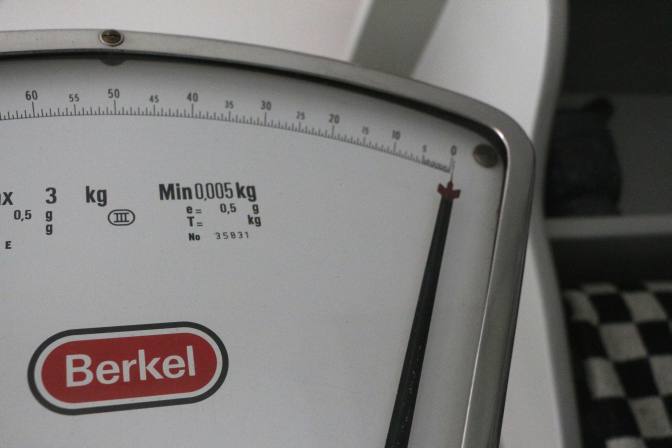 Super gave keukenweegschaal van het merk Berkel uit 1977. In zeer goede vintage staat; werkt nog naar behoren, maar is niet geijkt. Weegvermogen tot 3 kg. Afmetingen: